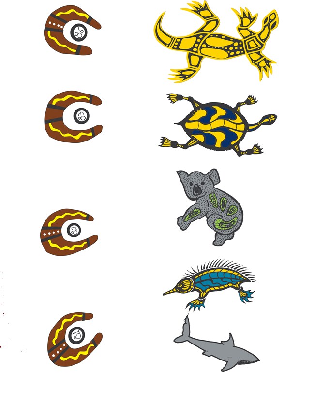 The totem on the bottom right, the shark, represents Josh Hoffman and his family from Badu Island.
