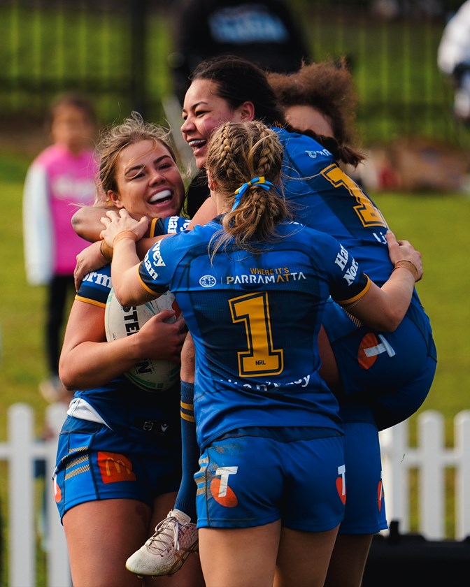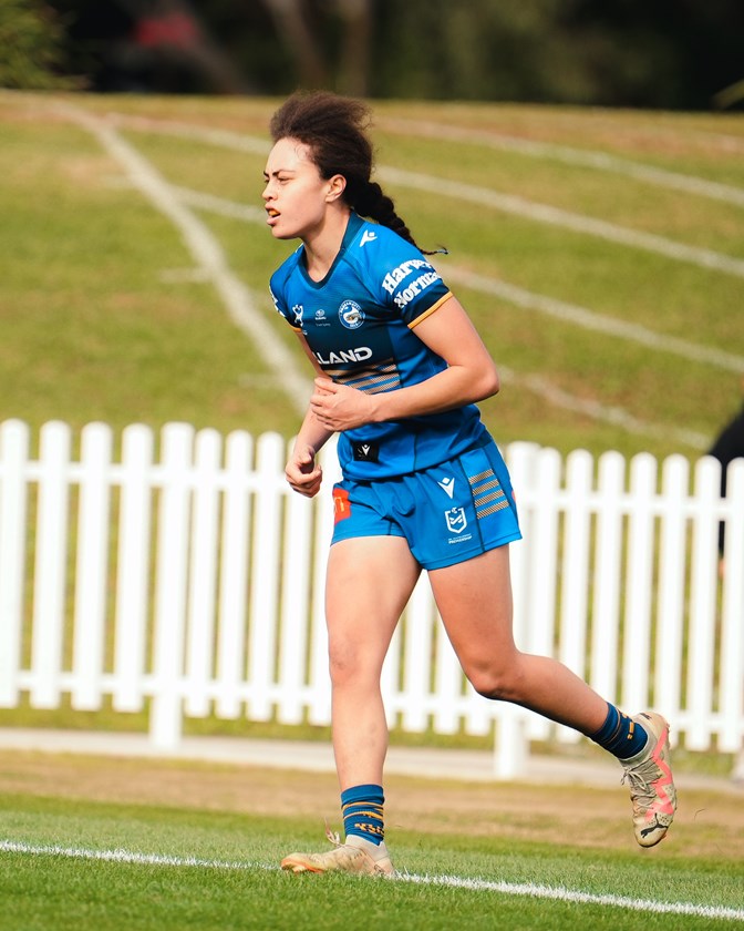 The Eels shifted left to Tohi-Hiku from a red-zone scrum, and she did it all herself with a dummy and a step to score.