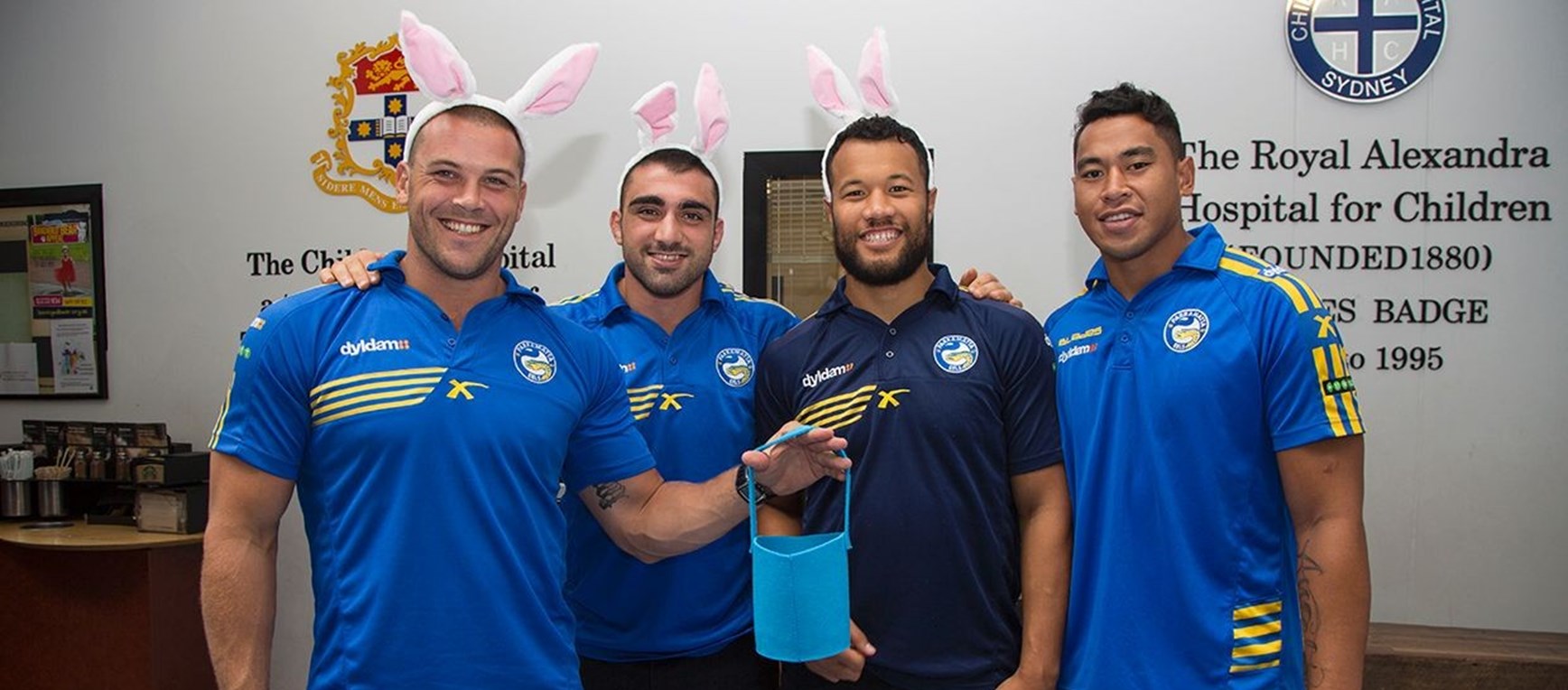 The Dyldam Parramatta Eels visited patients at the Children's Hospital Westmead to spread some Easter cheer