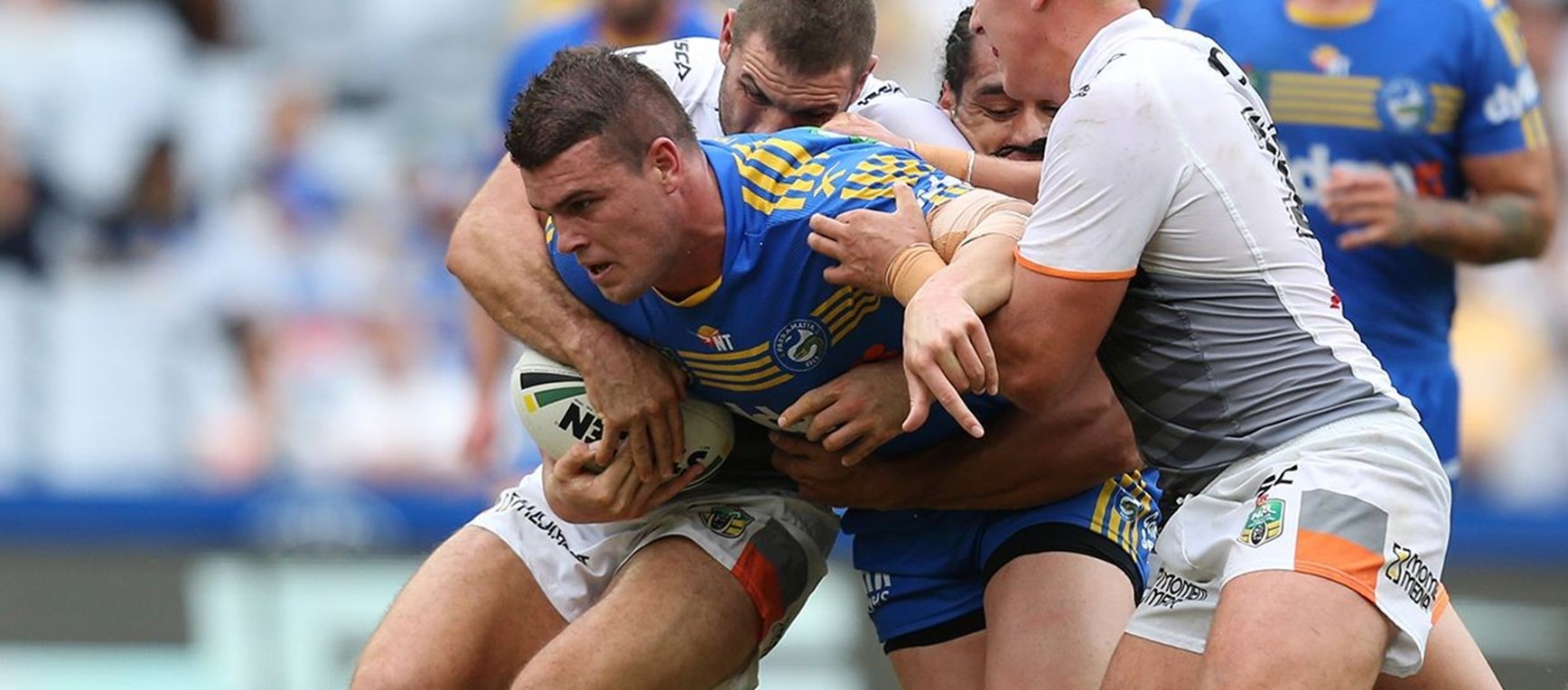 Photos of the Dyldam Parramatta Eels in action against the Wests Tigers at ANZ Stadium on Easter Monday 6 April 2015