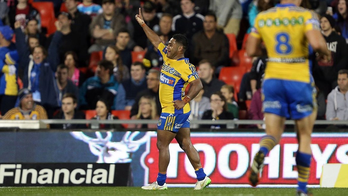 Semi Radradra put the Eels back in front with a blinder of a run and pass out to Brad Takairangi, who grubbed the ball back to the winger who regathered and slid over.