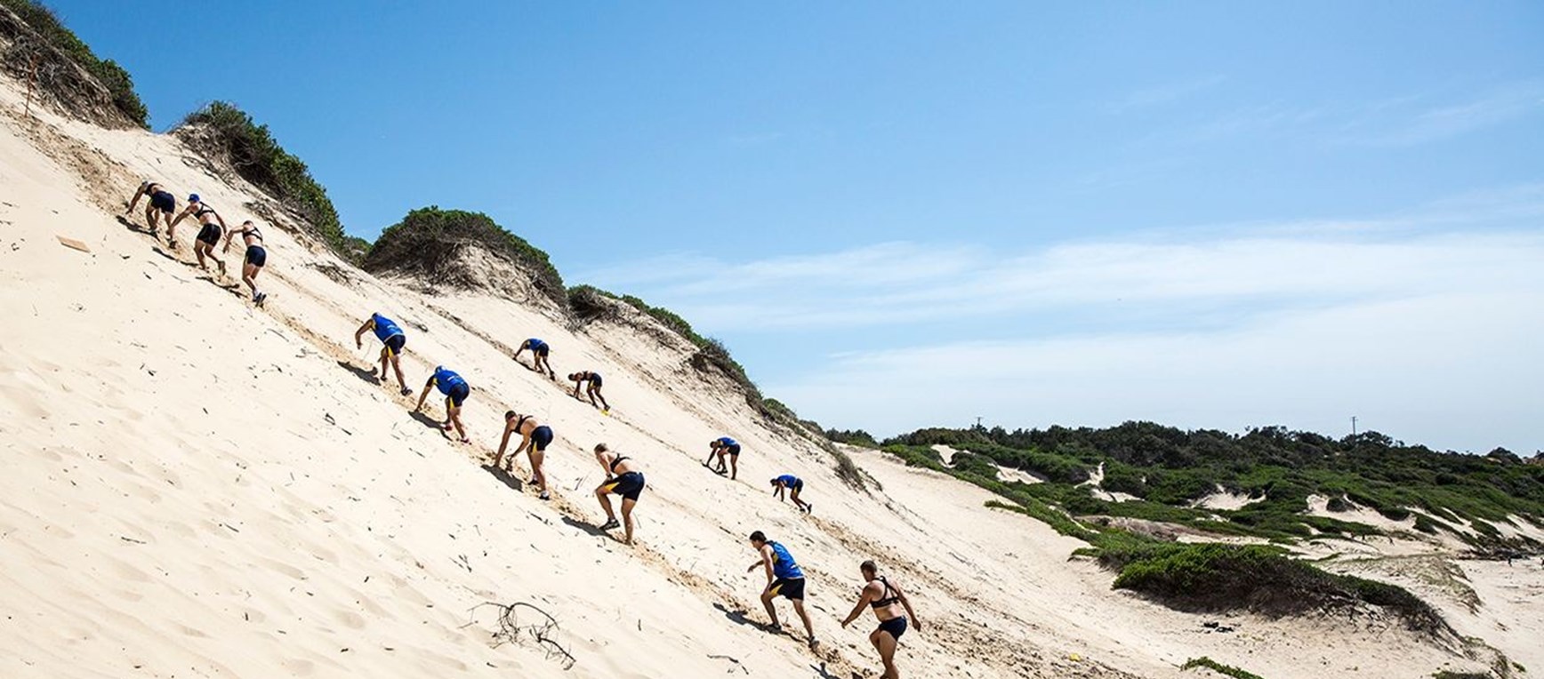 The Dyldam Parramatta Eels battled the Soldier's Beach Sand Dunes at Norah Head in 40 degree weather today to cap off their week of pre-season training at Shelly Beach.