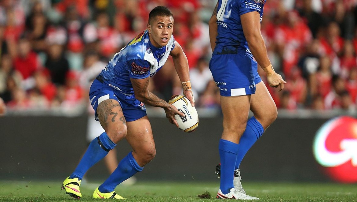 Errors started to creep into the Samoan game while their sets lacked the same sting as earlier on when Kasiano was causing no end of headaches. Drops from Mason Lino and Paulo hemmed them in their own end and when a lovely grubber from Moceidreke was pounced on by Manly centre Brayden Wiliame, the Bati had clawed themselves back to within two points at half-time.