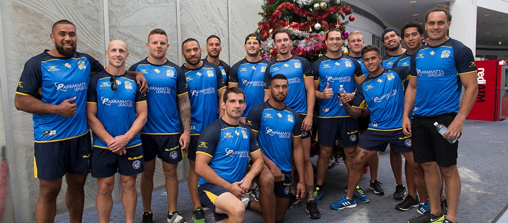 Yesterday afternoon (Tuesday 13 December), players from the Parramatta Eels visited the Children's Hospital at Westmead to take a ward tour and visit some of the patients doing it tough heading into the festive season.