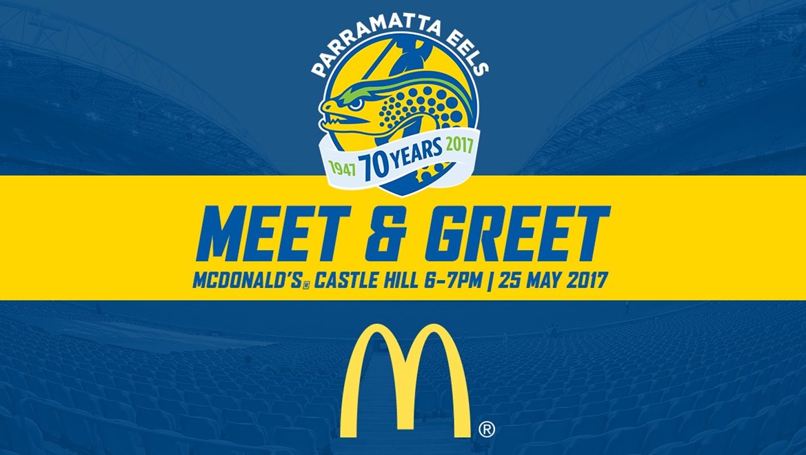 Meet & Greet with 2 Parramatta Eels NRL Players at McDonald's Castle Hill for an autograph and photo this Thursday 25 May 2017.