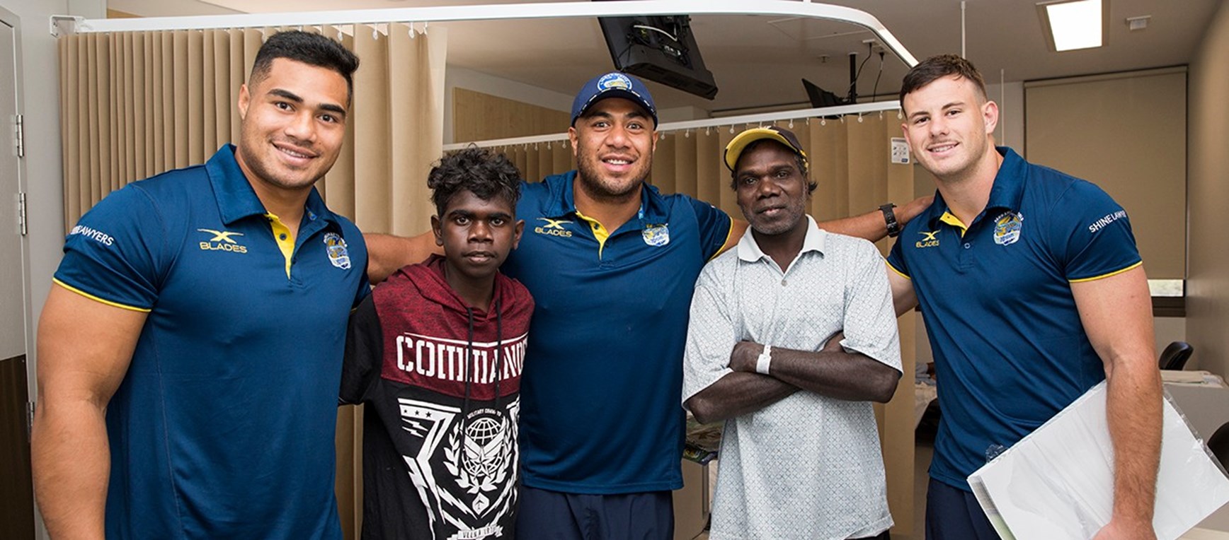 This week, before the Parramatta Eels took on the North Queensland Cowboys at Darwin's TIO Stadium, Blue & Gold players Kirisome Auva'a, Siosaia Vave, Matt Woods, Eels CEO Bernie Gurr and the NT Minister for Tourism and Culture - Lauren Moss, Member for Casuarina visited the Darwin Hospital putting smiles and bringing joy to some sick patients and their families.