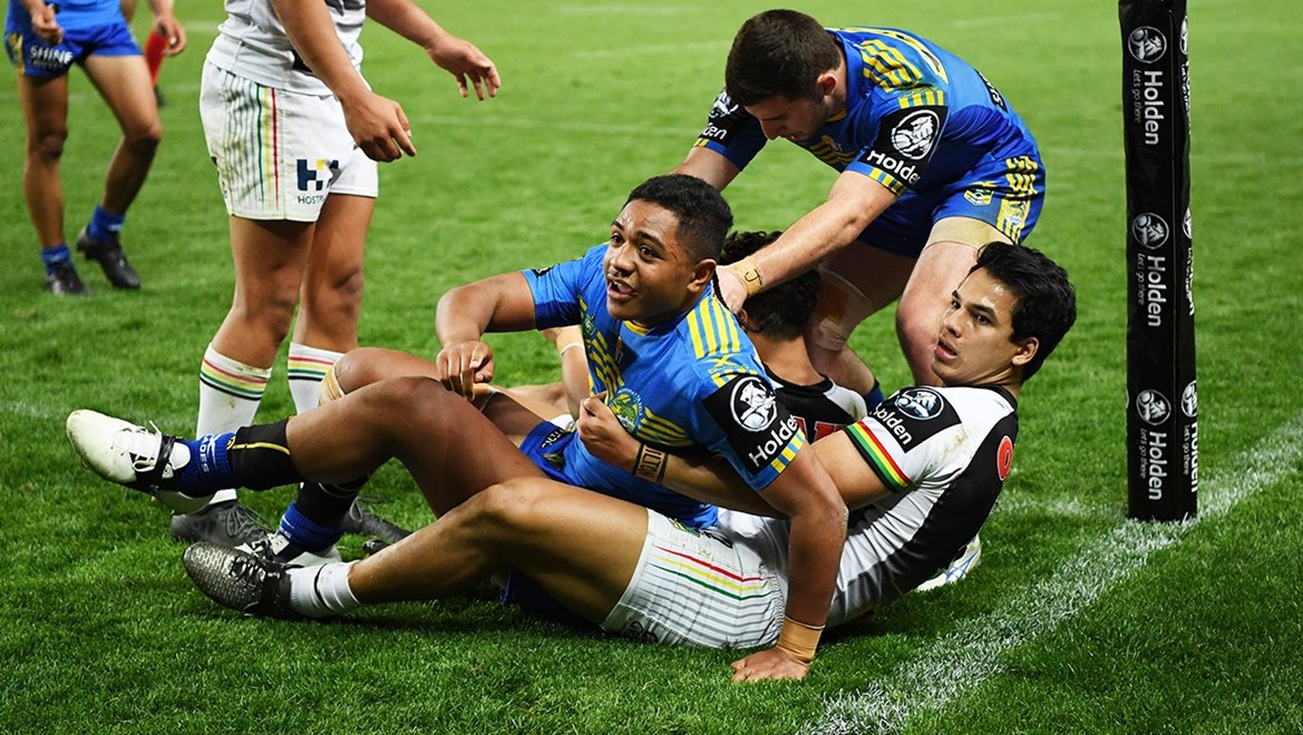 As the Eels worked their way inside the Panthers 20m, the ball spread quickly through the hands of Matterson, Brown, Layoun to found Fonua who dove over in the corner for a converted try.
