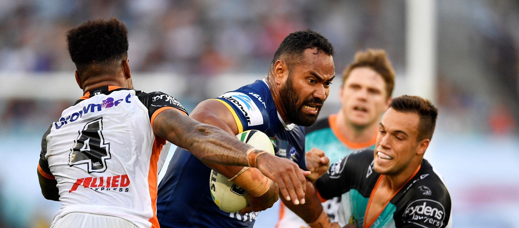 Photos of the Parramatta Eels Easter Monday clash against the Wests Tigers at ANZ Stadium for the Stay Kind Cup