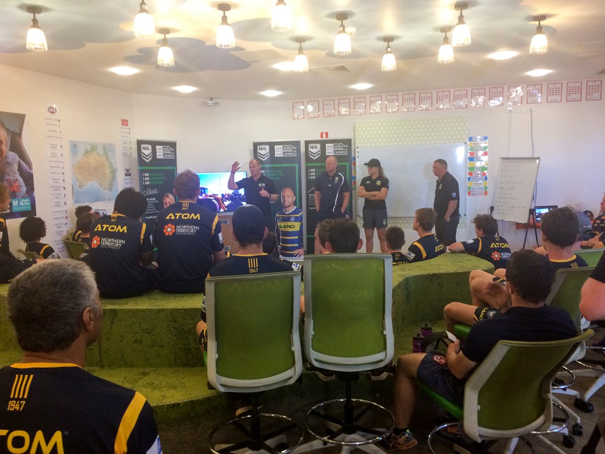 Last week, the Parramatta Eels held their annual Eels Academy Training Camp – Darwin at the Michael Long Learning and Leadership Centre, Northern Territory, for young, talented NT rugby league players. Kicking the week off with a two day camp for female rugby league players followed by three days for the boys, the participants in the camp continued to develop rugby league skills and gained plenty of vital knowledge from the Blue & Gold representatives across the week. The best local talent from the NT were also treated to an appearance by NRL and Eels forward David Gower, a vocation and education (VET) ambassador, who passed on messages around the importance of having career training or further education, providing genuine career options to fall back on away from football. The Eels Academy Training Camp has been run annually since the Eels partnership with the NT began in 2014.