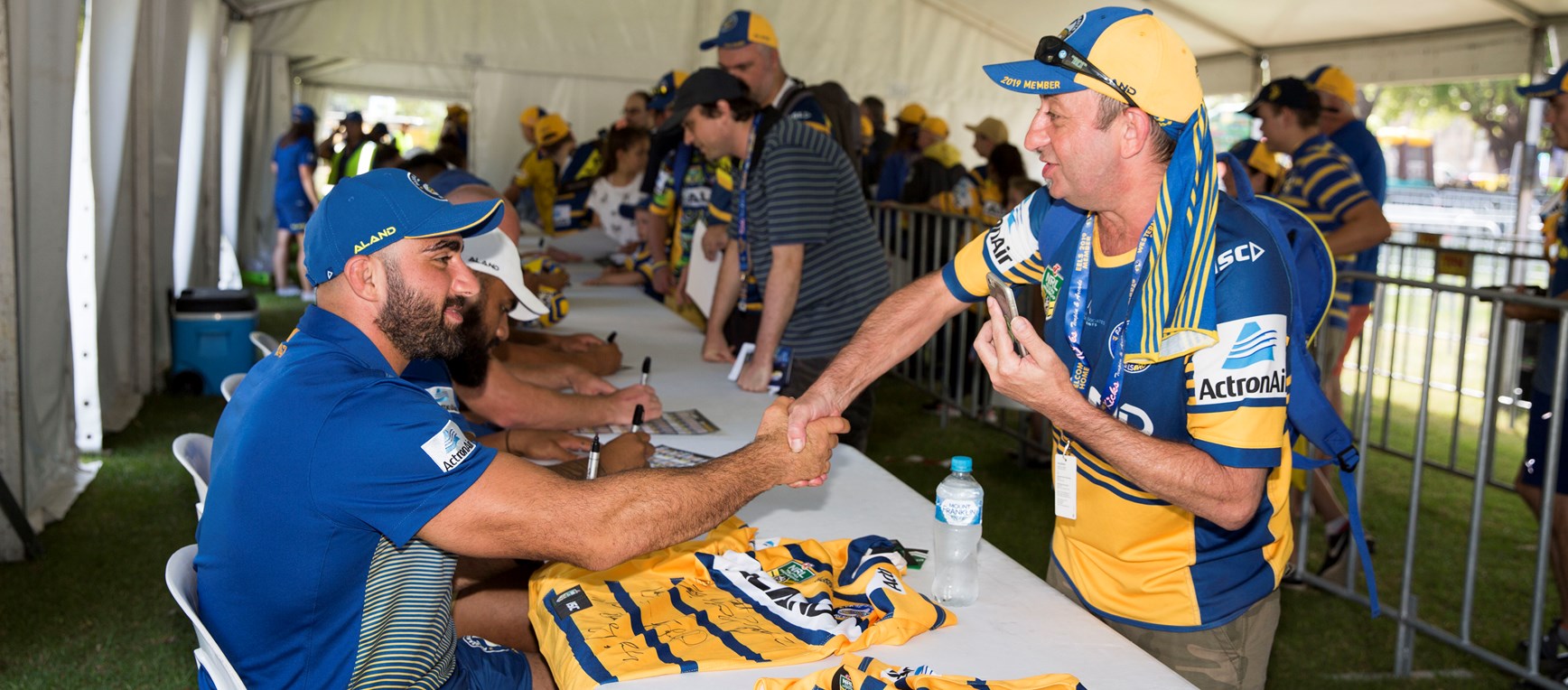 The Parramatta Eels held their annual Blue & Gold Army Festival at Prince Alfred Square, Parramatta yesterday afternoon (Sunday 3 March) with an exclusive signing zone for Blue & Gold Members, on stage Q&A's with Bernie Gurr, Brad Arthur, NRL and Jersey Flegg players, a Parramatta Eels Cheerleaders performance along with plenty of fun activations with the Eels Corporate and Charity Partners. Check out some of the best photos from the day