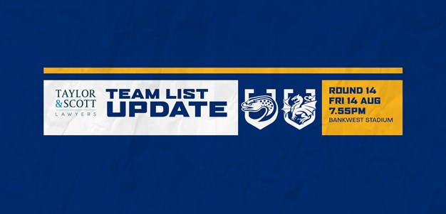 The Parramatta Eels line up to face the St. George Illawarra Dragons at Bankwest Stadium in Round 14 of the NRL Telstra Premiership has been confirmed by Blue & Gold Head Coach Brad Arthur.