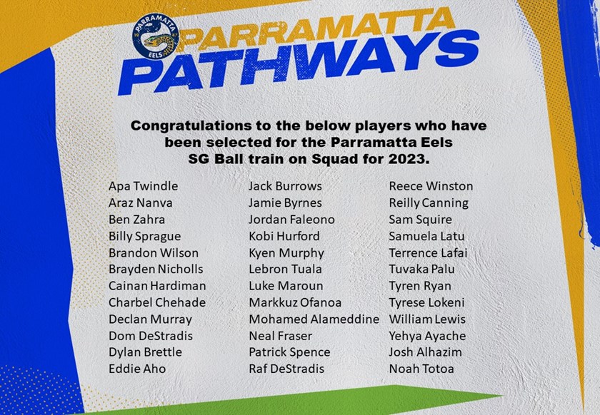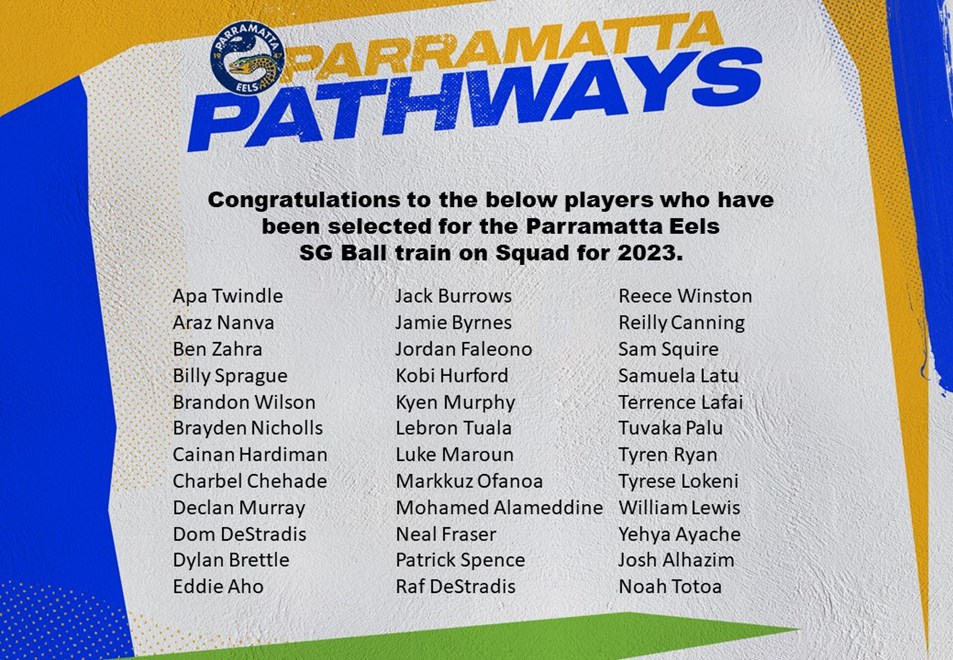 The Parramatta Eels would like to congratulate the below players on being selected in the 2023 SG Ball train on squad.