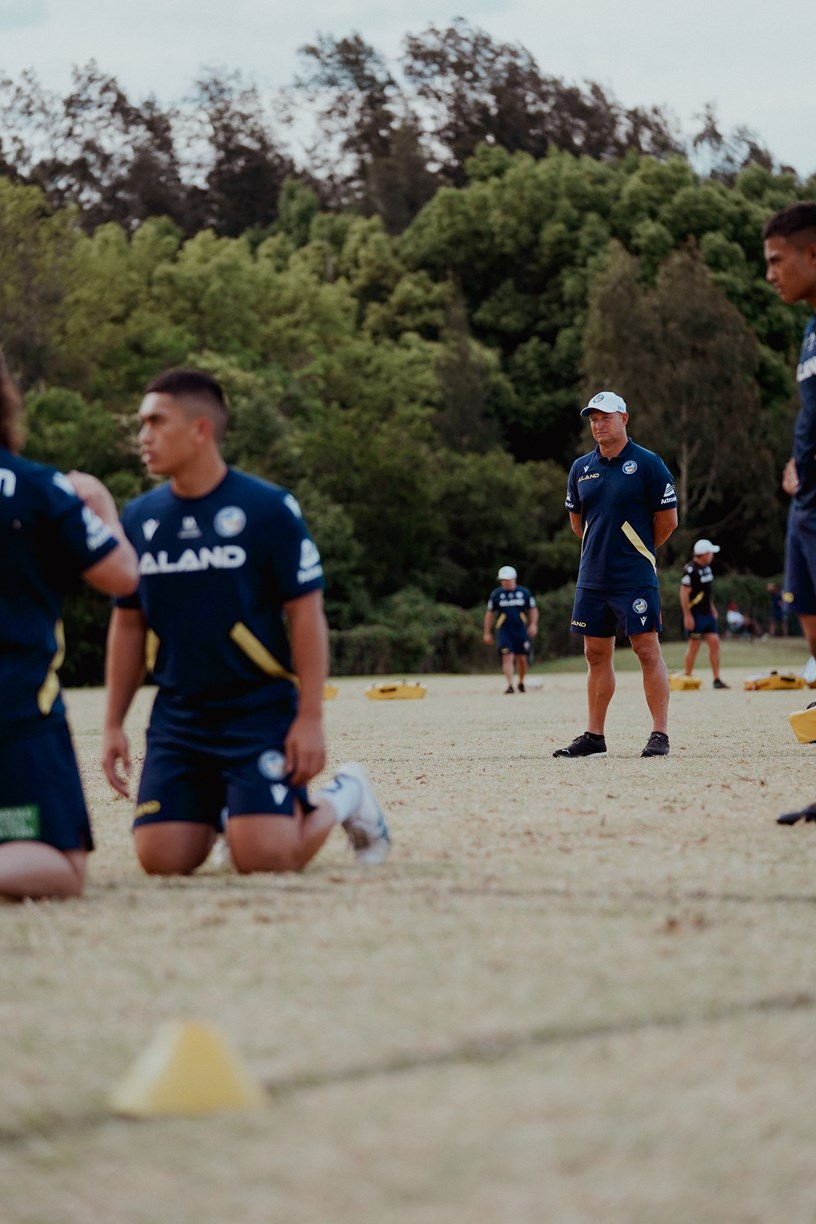The Eels' NRL coaching staff, including Brad Arthur, Trent Barrett and Nathan Cayless, recently ran a training session for the club's junior reps squads.