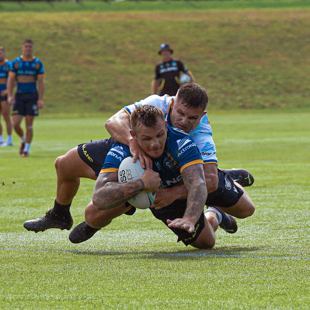 A first look at the Eels' new recruits as they pull on the Blue & Gold jersey for the first time in an opposed training session.