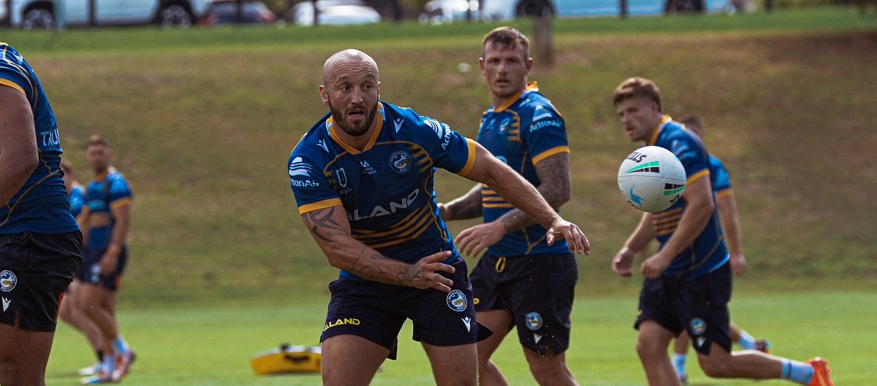 A first look at the Eels' new recruits as they pull on the Blue & Gold jersey for the first time in an opposed training session.