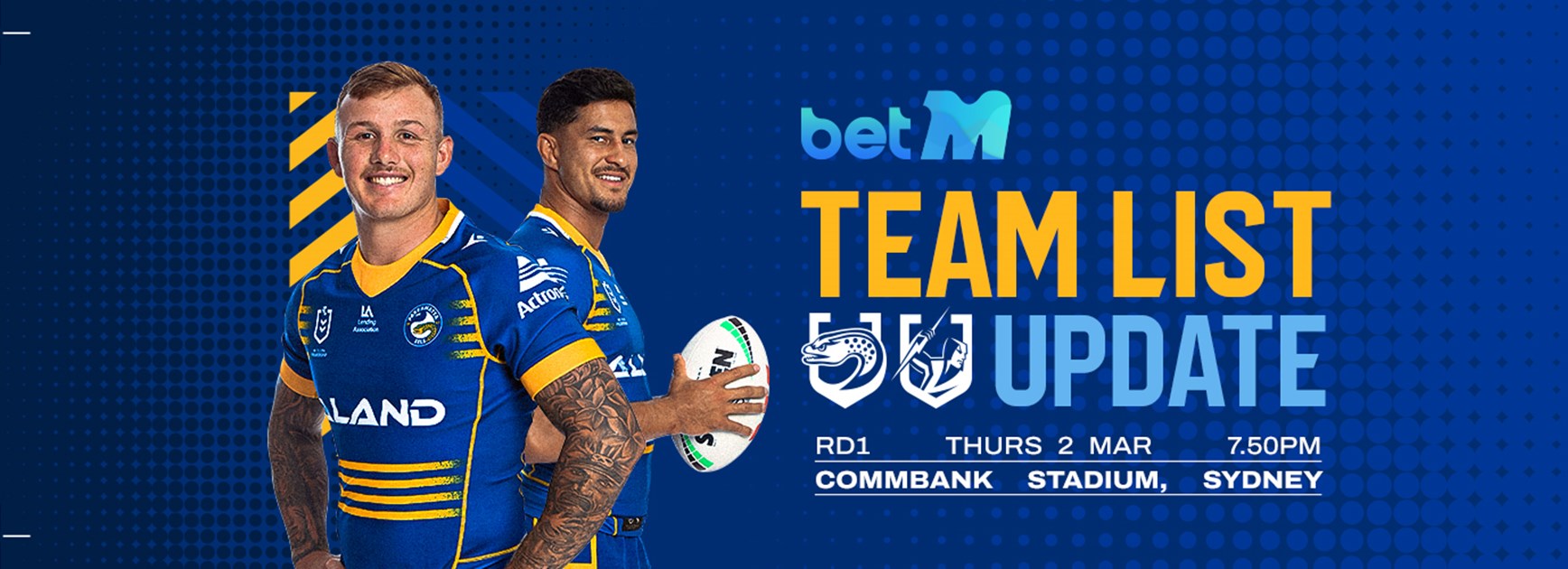 Replacement for Eels is number 18 Jake ArthurReplacement for Storm is number 16 Chris Lewis