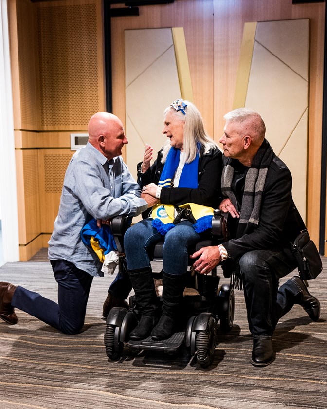 After learning Jo's story, Eels Chairman Sean McElduff arranged a spot on the sideline so she could cheer her beloved Blue & Gold onto the field for the Battle of the West.