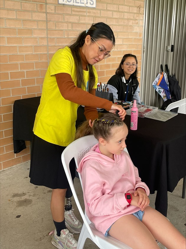 Teams excitedly took turns at the face painting and hair-braiding stations to get their look on-point for a big day of footy. They were also treated to the beats of DJ Andy G who kept the high-energy vibe all day, including a few retro hits for the adults to enjoy.