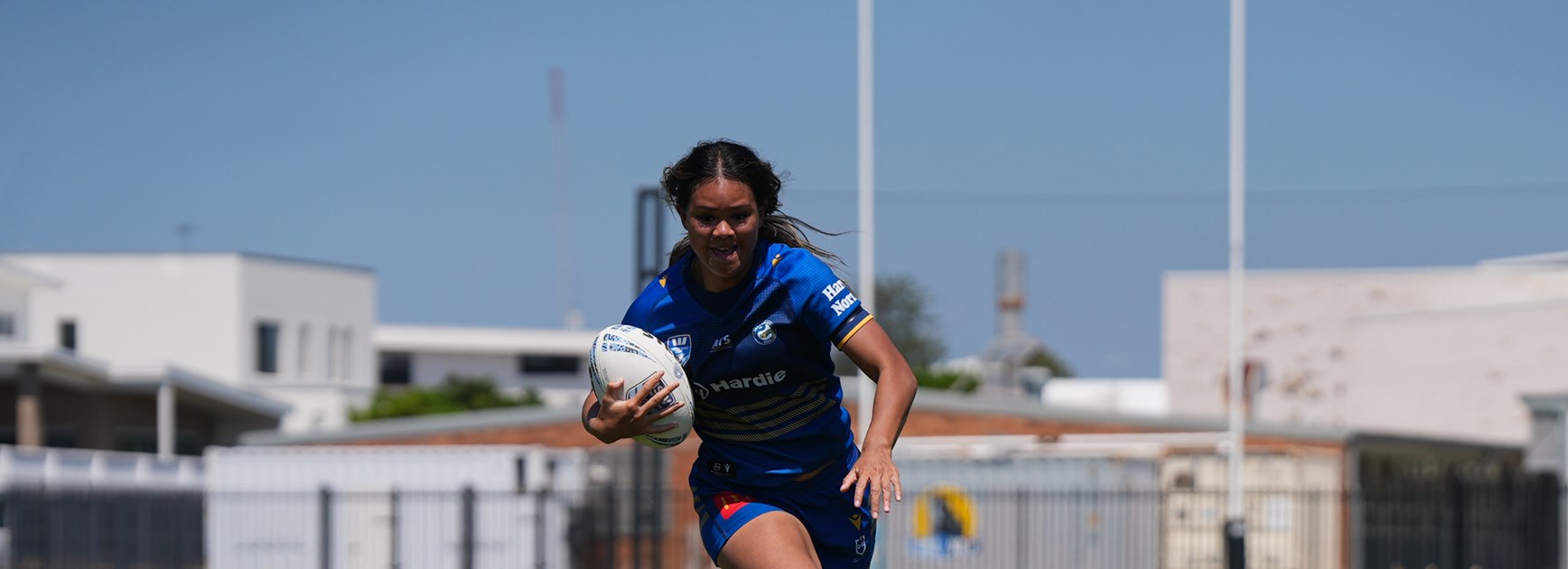 Tess McWilliams was denied a try in the Eels next possession when the ref ruled that she knocked on when grounding the ball in-goal, but it mattered little when Ava Jones scored from dummy half soon after.