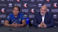 Mitchell Moses and Jason Ryles chat to the media after their Round 22 clash against the Storm